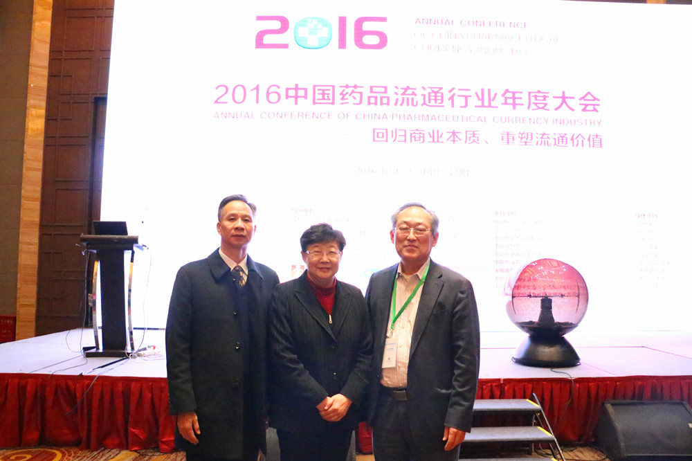 從左至右:公司黨委副書記、紀委書記駱春濤,中國醫(yī)藥商業(yè)協(xié)會執(zhí)行會長付明仲,公司前任黨委書記于景輝