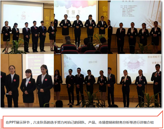 風(fēng)采各異的八十支參賽隊(duì)伍經(jīng)歷了初賽和復(fù)賽的層層篩選后,脫穎而出的六支隊(duì)伍在決賽一展他們的風(fēng)采。參賽隊(duì)伍按抽簽結(jié)果依次進(jìn)行比賽,比賽分為8分鐘PPT展示環(huán)節(jié)和6分鐘選手答辯環(huán)節(jié)。在PPT展示環(huán)節(jié),六支隊(duì)伍的選手努力對(duì)自己的團(tuán)隊(duì)、產(chǎn)品、市場(chǎng)營(yíng)銷和財(cái)務(wù)分析等進(jìn)行詳細(xì)介紹;在答辯環(huán)節(jié),選手們對(duì)評(píng)委們提出的各種疑問(wèn)進(jìn)行解答,對(duì)評(píng)委們的建議也虛心接納。比賽結(jié)束,共角逐出了一二三等獎(jiǎng)、優(yōu)秀個(gè)人獎(jiǎng)、優(yōu)秀團(tuán)隊(duì)表現(xiàn)獎(jiǎng)。