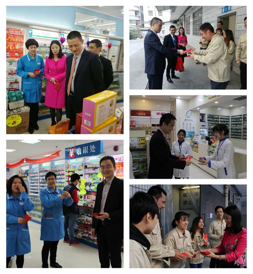 “新年好!”“祝大家身體健康、萬(wàn)事如意!”……一聲聲溫暖的問(wèn)候,一句句祝福的話語(yǔ),讓春節(jié)期間仍堅(jiān)守在工作崗位上的健民小伙伴們倍感貼心。每到一處,陳總裁、鄭書記都熱情地向員工一一問(wèn)好,送上充満祝福的利是,對(duì)他們的辛勤工作表示衷心感謝。公司領(lǐng)導(dǎo)還非常關(guān)心零售業(yè)務(wù)的發(fā)展,向門店了解銷售業(yè)績(jī)、品種結(jié)構(gòu)等業(yè)務(wù)情況,為大家加油鼓勁。