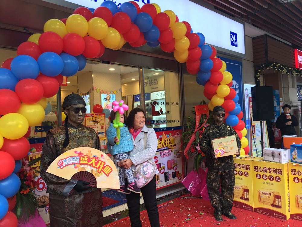 當(dāng)日的廣州寒流來(lái)臨,因有熱鬧精彩的吸睛表演和開(kāi)業(yè)現(xiàn)場(chǎng)的熱烈氣氛,令街坊朋友感受到滿滿的暖意和快樂(lè)。瞧,行為藝術(shù)銅人秀的藝術(shù)家身穿舊時(shí)代的衣著,酷似于廣州街頭盛行的銅像雕塑,似真似假讓人捉摸不透;滑稽小丑在現(xiàn)場(chǎng)派發(fā)免費(fèi)的氣球,給大家?guī)?lái)無(wú)限歡樂(lè),小朋友和大朋友都哈哈笑不停。