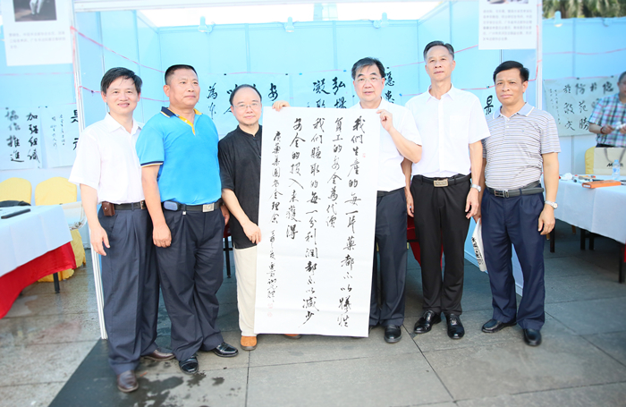在啟動儀式上,省委常委、常務(wù)副省長林少春做了重要講話,并宣布執(zhí)法隊(duì)伍現(xiàn)場出發(fā)。隨后省、市領(lǐng)導(dǎo)參觀咨詢及書畫揮毫現(xiàn)場,看望設(shè)點(diǎn)咨詢的單位和工作人員。在書畫揮毫現(xiàn)場,天河區(qū)書法家協(xié)會主席謝光輝教授正在為廣藥集團(tuán)書寫安全生產(chǎn)理念,引起了林少春常務(wù)副省長的特別關(guān)注并駐足欣賞。廣藥集團(tuán)總經(jīng)理陳矛詳細(xì)地向林少春常務(wù)副省長介紹了集團(tuán)的安全生產(chǎn)理念,以及集團(tuán)的安全生產(chǎn)工作情況。林少春常務(wù)副省長對廣藥集團(tuán)的安全生產(chǎn)工作予以高度的評價(jià)和充分的肯定,并要求一如既往地把安全工作抓好、抓實(shí)、抓細(xì)。