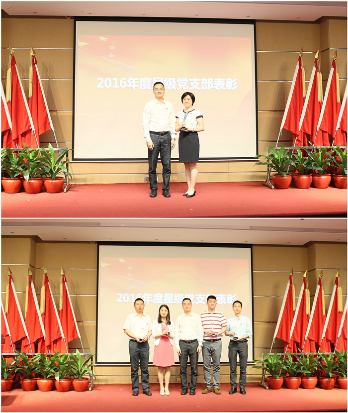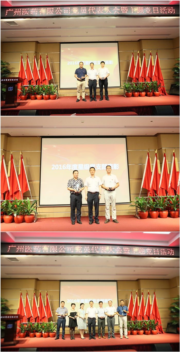 廣州醫(yī)藥總裁、黨委副書記陳光焰總裁為獲得二星級(上圖)、三星級(中圖)和四星級(下圖)黨支部頒獎