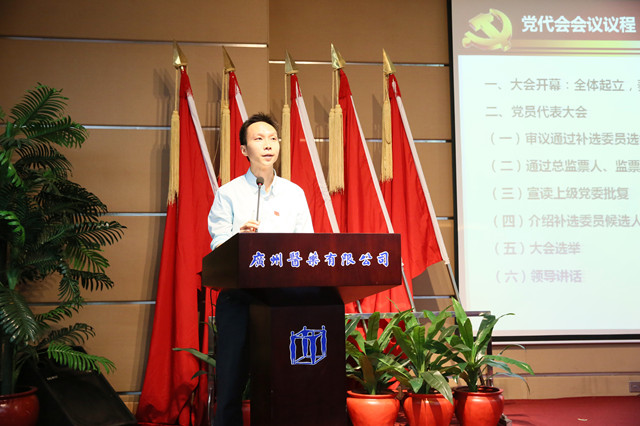 廣州醫(yī)藥黨委委員、運營管理部、合資子公司管理部總監(jiān)朱振宇主持黨代會