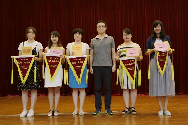 廣州醫(yī)藥黨委委員、運(yùn)營(yíng)管理部總監(jiān)朱振宇(左四)為“2016年度行業(yè)工會(huì)小組、組長(zhǎng)”頒獎(jiǎng)