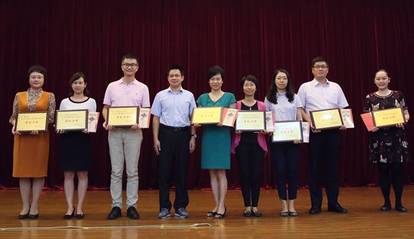 廣州醫(yī)藥工會(huì)主席、企業(yè)文化部總監(jiān)何毅(左三)為“好標(biāo)題、好專欄”獲獎(jiǎng)?wù)哳C獎(jiǎng)