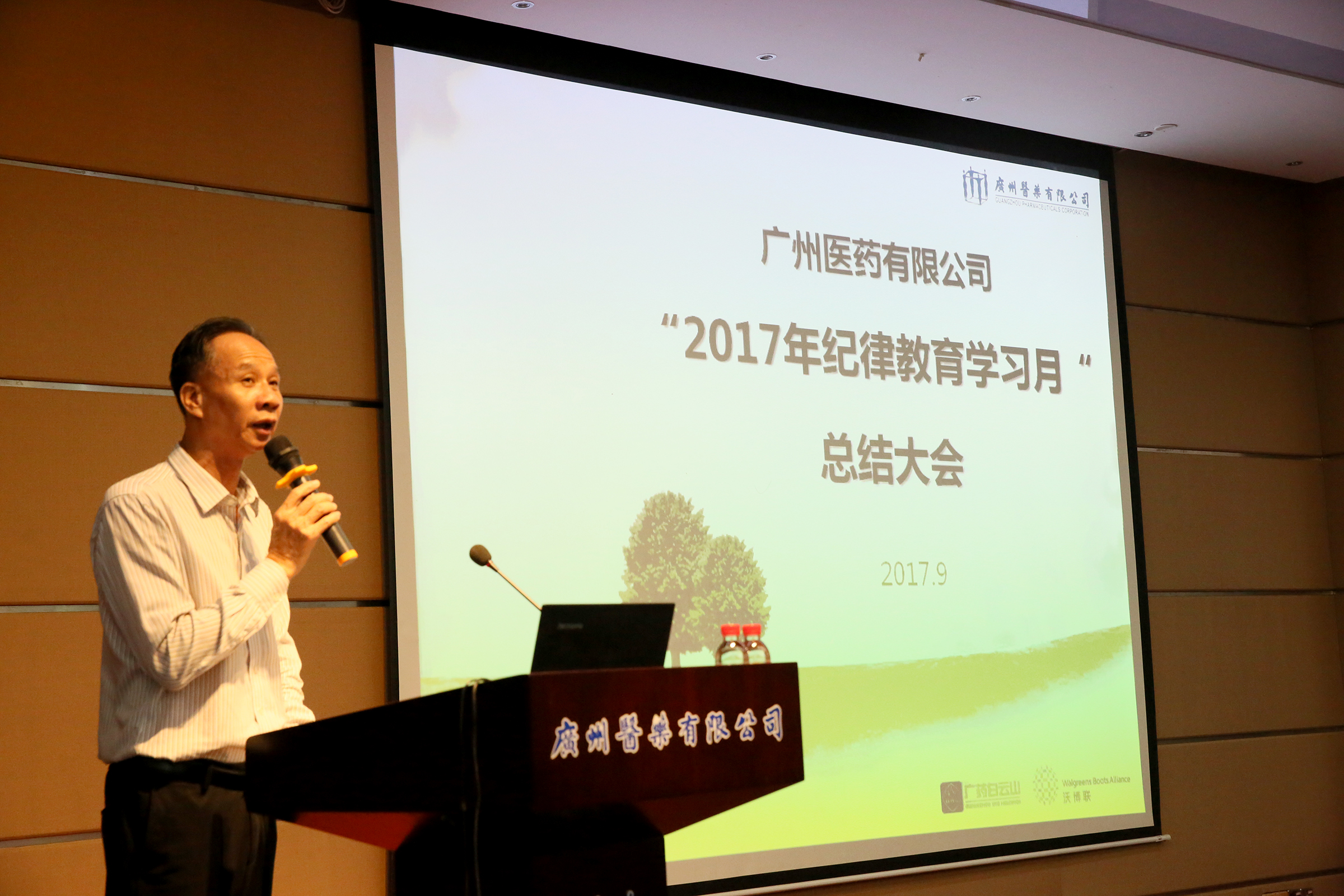 9月15日,廣州醫(yī)藥有限公司召開2017年度紀(jì)律教育學(xué)習(xí)月總結(jié)大會(huì)。會(huì)議由公司黨委副書記、紀(jì)委書記駱春濤主持,廣藥集團(tuán)紀(jì)委副書記李仕平,公司黨委書記鄭堅(jiān)雄,公司黨委委員、副總裁方達(dá)鋒,副總裁羅會(huì)怡,黨委委員、工會(huì)主席何毅,公司紀(jì)委委員以及公司本部經(jīng)理級(jí)以上主管,廣州地區(qū)子公司高管等200人參加會(huì)議。