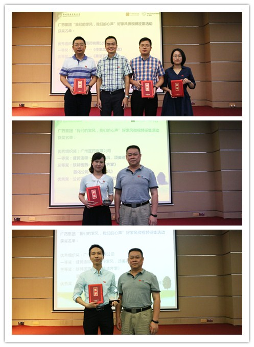 李仕平副書記、鄭堅(jiān)雄書記分別為“廣藥好家風(fēng)”微視頻獲獎(jiǎng)個(gè)人及集體頒獎(jiǎng)