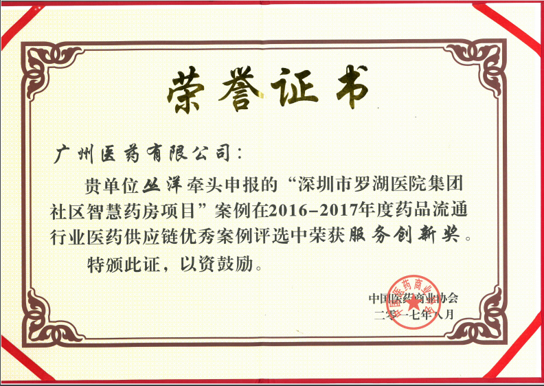 “深圳市羅湖醫(yī)院集團社區(qū)智慧藥房項目”獲得“服務創(chuàng)新獎”
