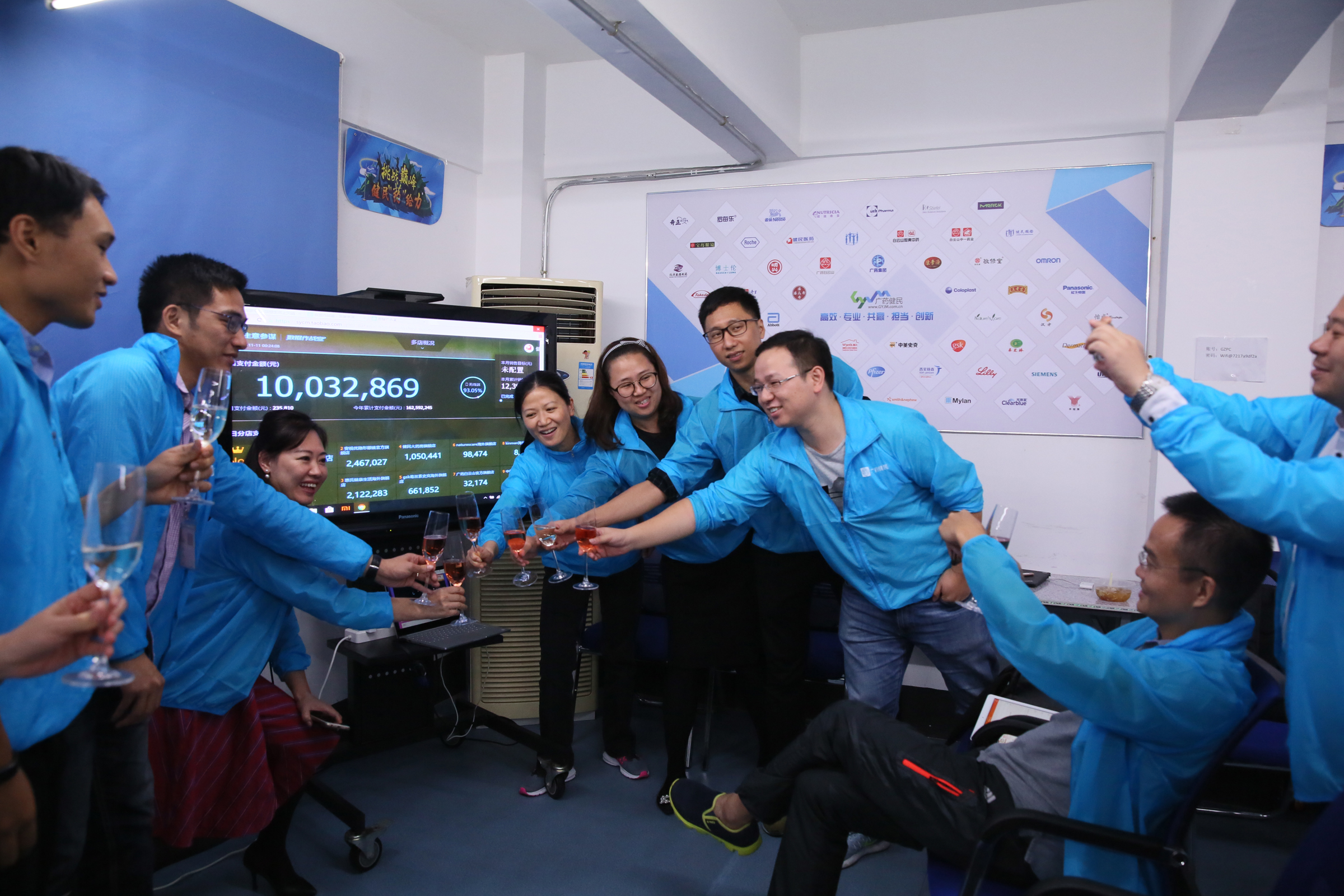 突破1000萬,團(tuán)隊(duì)成員舉杯慶祝