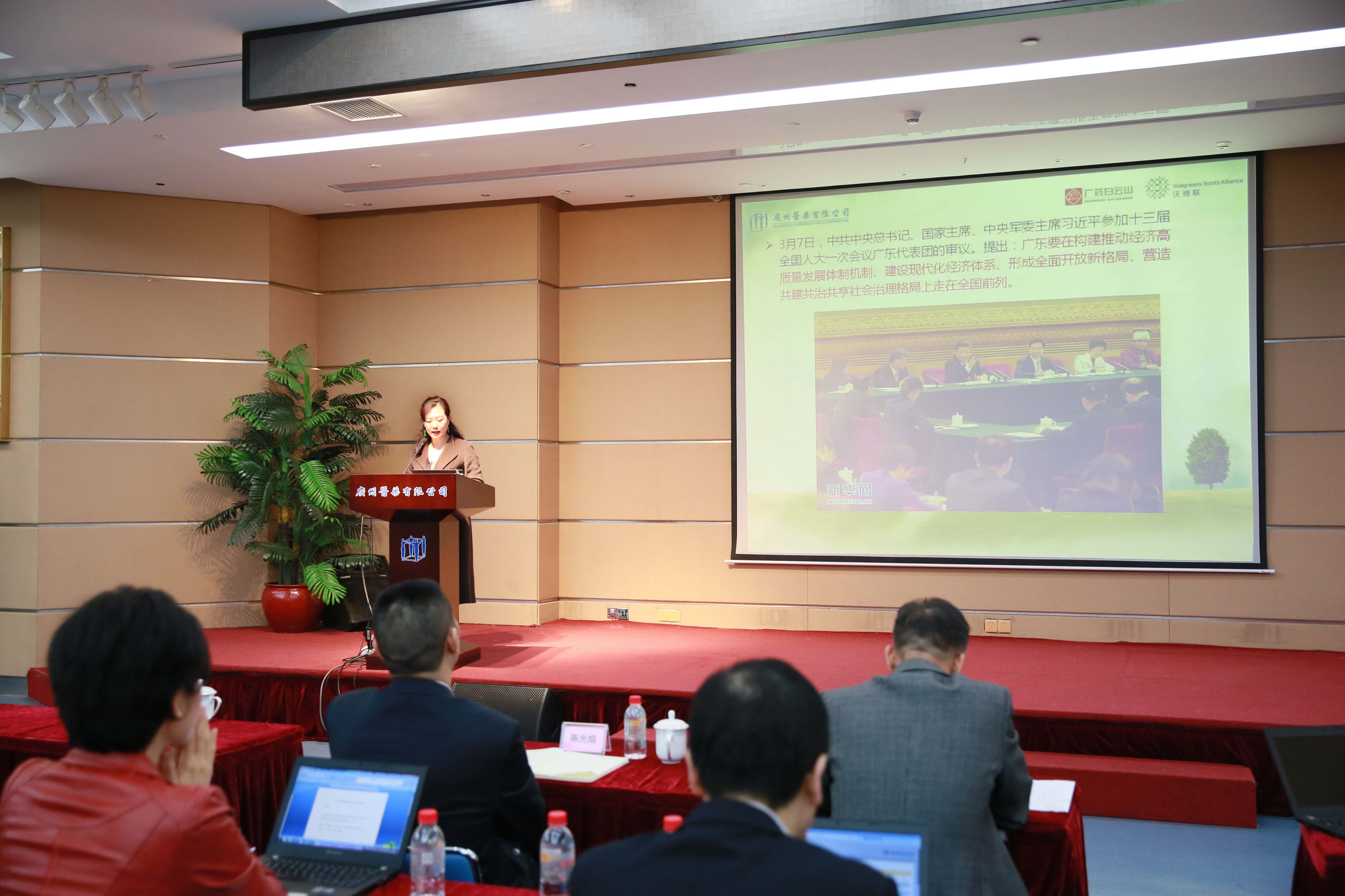 會上,廣州醫(yī)藥黨委委員、工會主席何毅傳達(dá)了習(xí)近平總書記在參加廣東代表團(tuán)審議時的重要講話精神。她表示按照上級關(guān)于認(rèn)真學(xué)習(xí)宣傳貫徹習(xí)近平總書記重要講話的通知,各級主管要帶頭認(rèn)真學(xué)習(xí)講話精神,同時帶領(lǐng)廣大員工切實地把思想和行動統(tǒng)一到習(xí)近平總書記重要講話精神上來,轉(zhuǎn)化為忠誠核心、擁戴核心、維護(hù)核心、捍衛(wèi)核心的高度思想自覺和行動自覺;黨員、干部、職工群眾要深刻領(lǐng)會,充分認(rèn)識習(xí)近平總書記重要講話對廣東在新起點上再創(chuàng)新局面的重大意義,結(jié)合企業(yè)經(jīng)營、崗位工作貫徹到實處。并就學(xué)習(xí)貫徹提出了兩點要求:一是管理干部帶頭、黨支部、工會、團(tuán)委帶頭組織學(xué)、原原本本學(xué),深刻領(lǐng)會、時刻牢記習(xí)總書記對廣東工作提出的“四個走在全國前列”的重托;二是各級主管要聯(lián)系實際謀劃推動工作,結(jié)合實際,促進(jìn)發(fā)展,結(jié)合廣州醫(yī)藥2018年“四大攻堅戰(zhàn)”堅持創(chuàng)新發(fā)展,做好服務(wù)創(chuàng)新、模式創(chuàng)新,全力開拓創(chuàng)新之路,同時做好經(jīng)營過程中的風(fēng)險防范,做到有效率有質(zhì)量地發(fā)展,努力完成今年的各項指標(biāo)任務(wù)。