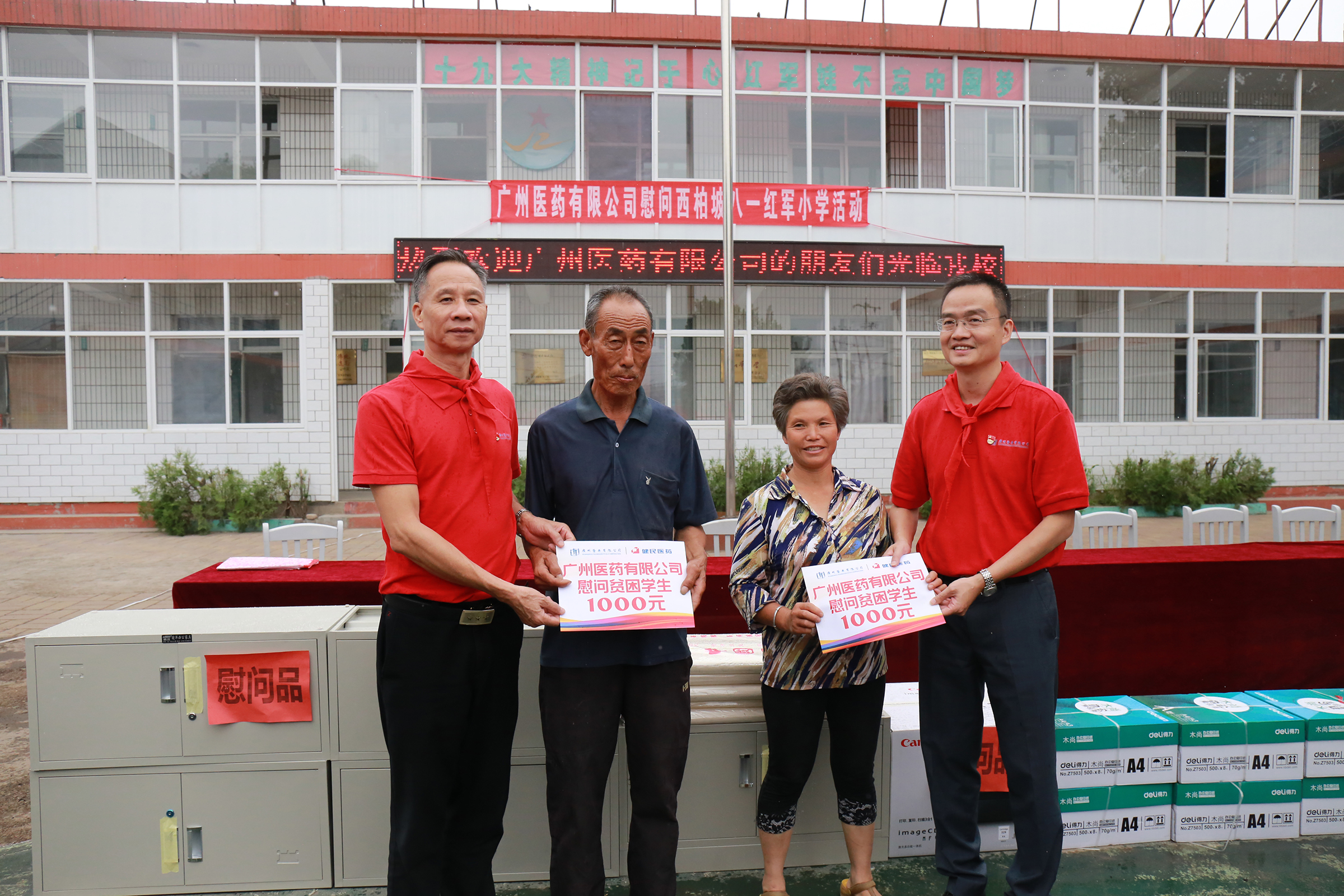活動當(dāng)天,廣州醫(yī)藥向校方贈送一批打印機(jī)、鐵皮柜、油畫筆等教學(xué)必須的辦公用品,改善學(xué)校的辦學(xué)條件。