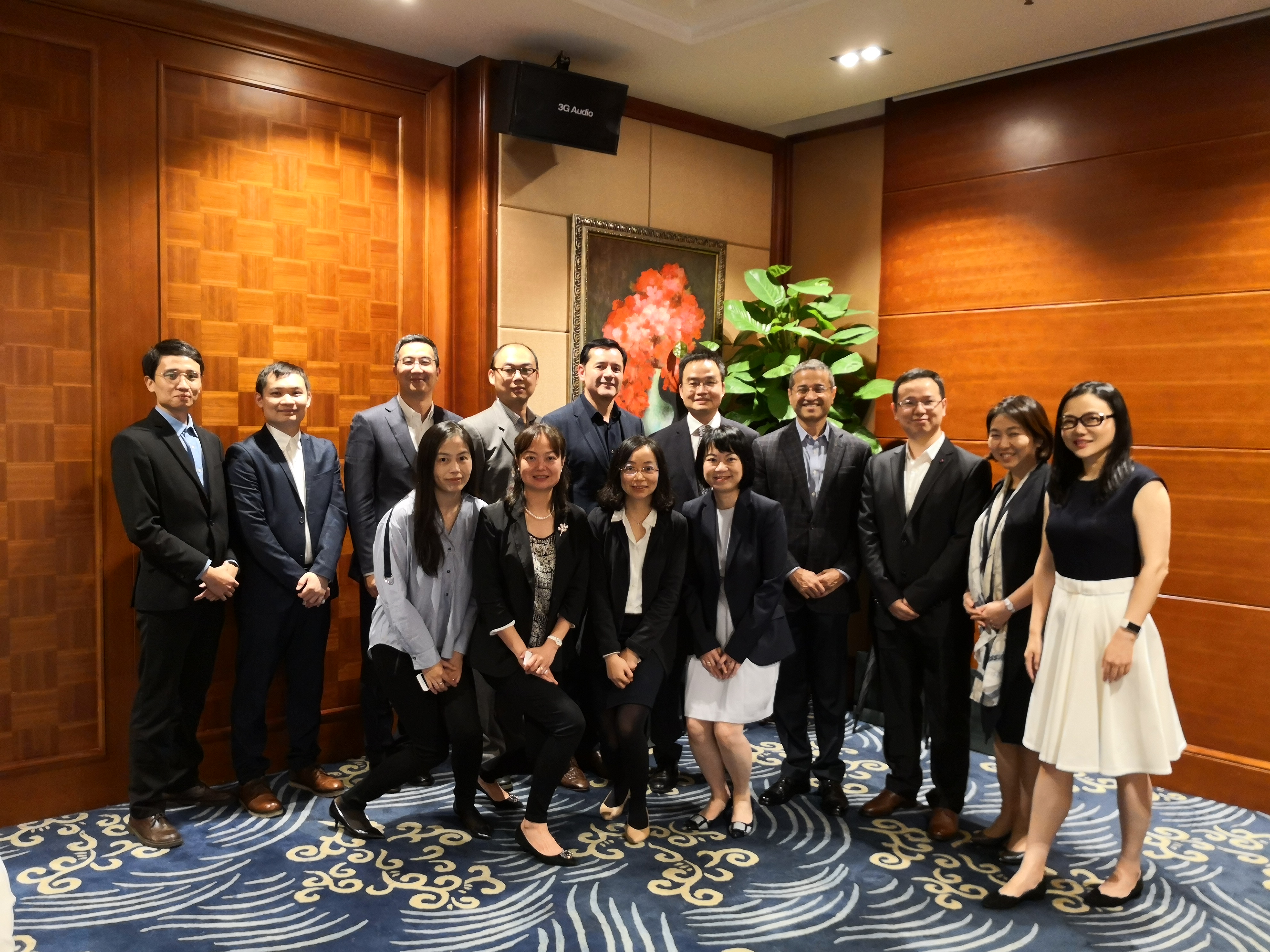 廣州醫(yī)藥黨委書(shū)記、董事長(zhǎng)鄭堅(jiān)雄(左)與強(qiáng)生視力健全球總裁Swami會(huì)面參會(huì)人員合影