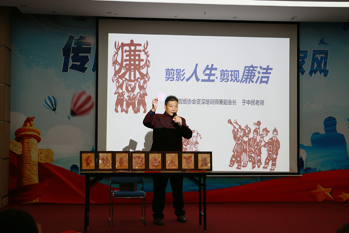 采購(gòu)中心總監(jiān)于新明分享了他與妻子之間細(xì)水流長(zhǎng)的浪漫故事,闡釋夫妻之間的互相體諒是美滿家庭的必然要素;大眾藥品銷售分公司總監(jiān)何振綱朗讀了自己寫(xiě)給父母的一封信,分享了父母對(duì)他的諄諄教誨,“他們是我的第一位且最重要的老師”。 在“清風(fēng)滿家:剪影人生·剪現(xiàn)廉潔”環(huán)節(jié)上,廣州剪紙協(xié)會(huì)資深培訓(xùn)師兼副會(huì)長(zhǎng)于中民演示了各種剪紙技巧,并指導(dǎo)在場(chǎng)人員剪出屬于自己的廉潔家風(fēng)主題作品。現(xiàn)場(chǎng)氣氛熱烈,員工與家人其樂(lè)融融。