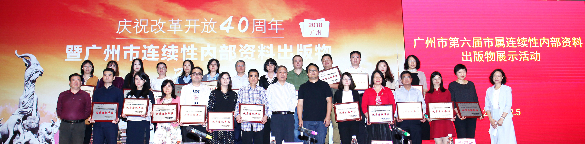 獲得“優(yōu)秀出版物單位”的企業(yè)上臺領(lǐng)獎(廣州醫(yī)藥代表,前排左四)