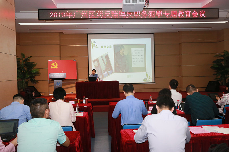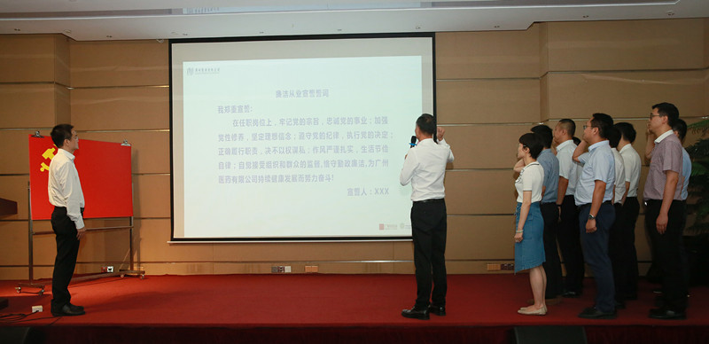 4月25日上午,廣州醫(yī)藥召開2019年反賭博反職務(wù)犯罪專題教育會議。會議邀請越秀區(qū)檢察院檢察官作廉潔教育培訓(xùn),對新提拔中層干部進(jìn)行集體廉潔宣誓以及管理干部簽訂廉潔承諾書。廣州醫(yī)藥黨委書記、董事長鄭堅雄等公司高管、本部各級主管、省內(nèi)成員企業(yè)主管共200多人出席會議。廣州醫(yī)藥黨委副書記、紀(jì)委書記駱春濤主持會議。