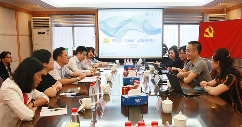 7月30日,廣州市委外事工作委員會辦公室(簡稱“市委外辦”)副巡視員曠昌平帶領(lǐng)及市委外辦第六黨支部黨員來到廣州醫(yī)藥開展“不忘初心,牢記使命”主題教育調(diào)研。廣州醫(yī)藥黨委書記、董事長鄭堅雄,黨委委員、董事王紅嫣,黨委委員、工會主席、黨辦主任何毅以及黨員代表參加了座談。