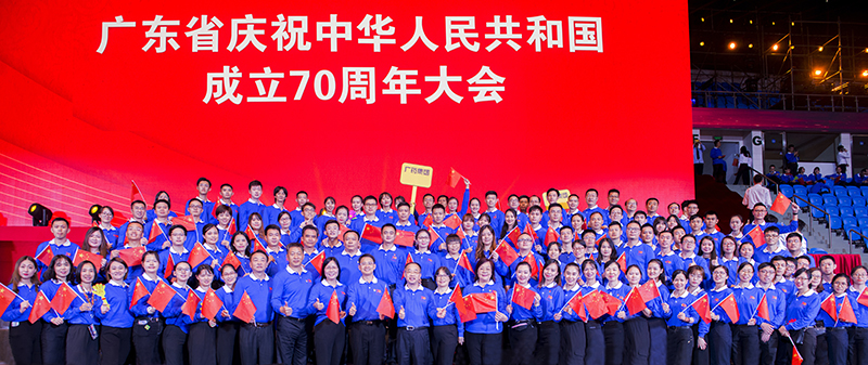 9月29日,廣東省慶祝中華人民共和國成立70周年大會(huì)在廣州體育館隆重舉行。省委書記李希出席大會(huì)并講話,省長(zhǎng)馬興瑞主持大會(huì)。大會(huì)安排7200人的方陣進(jìn)行激情澎湃、氣氛高漲的拉歌環(huán)節(jié)。廣藥集團(tuán)120人作為大灣區(qū)方陣的一部分,廣州醫(yī)藥黨委委員、工會(huì)主席、黨辦主任何毅,各黨(總)支部的黨員共20人參演其中。