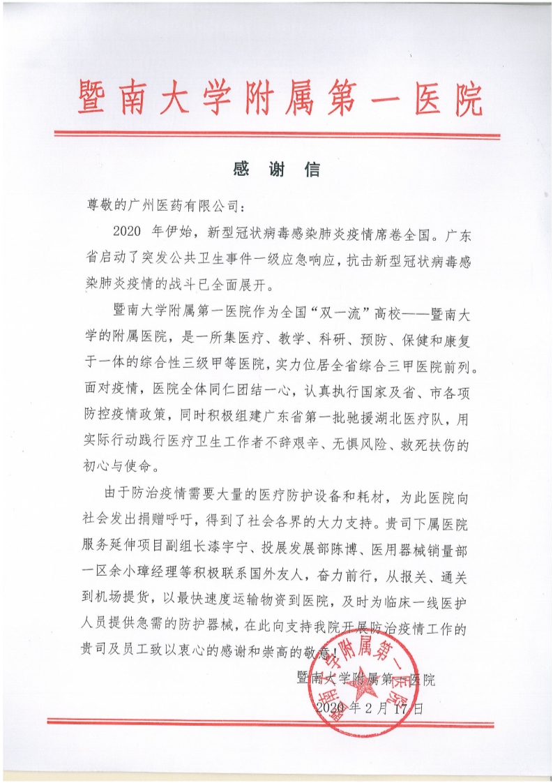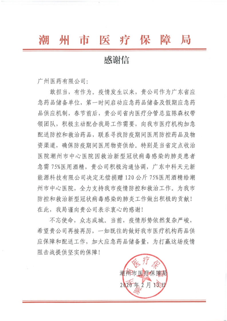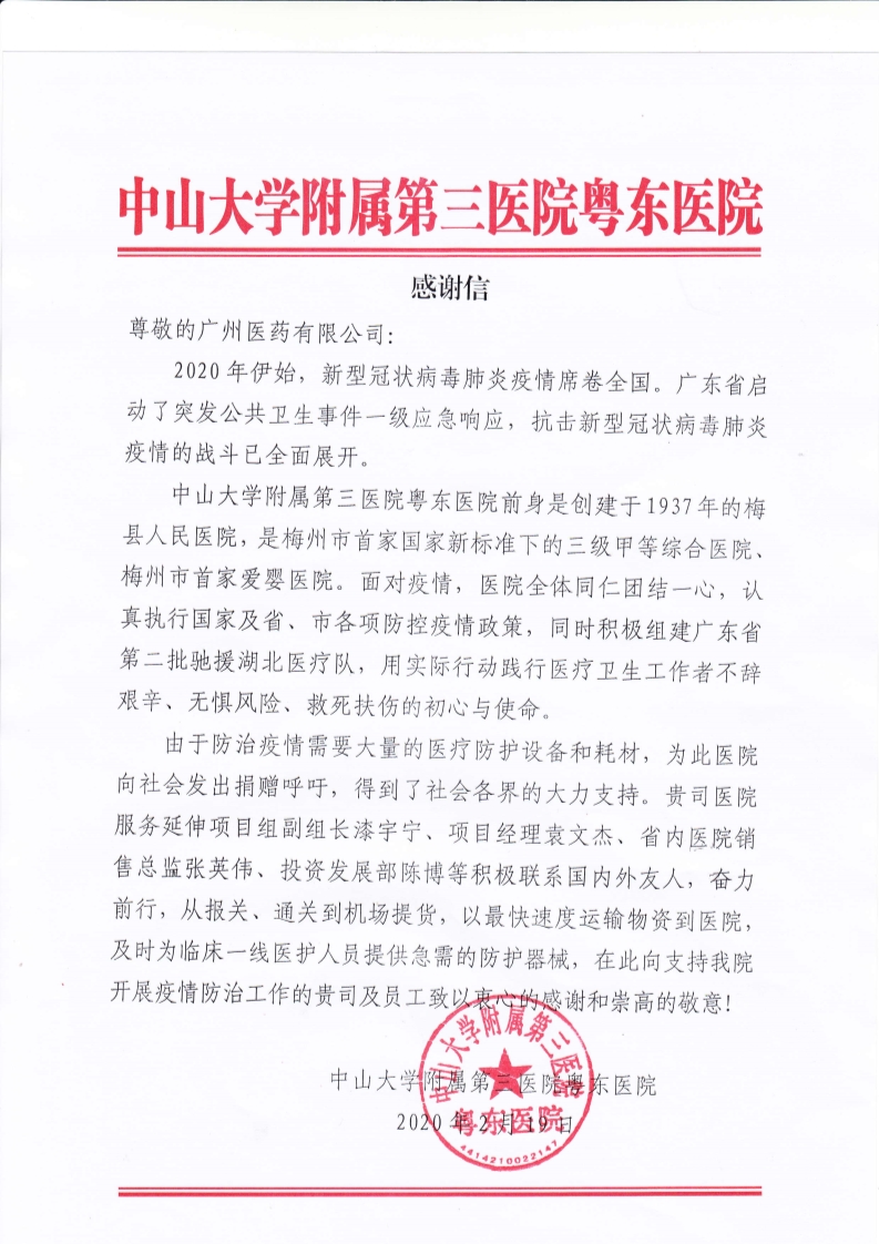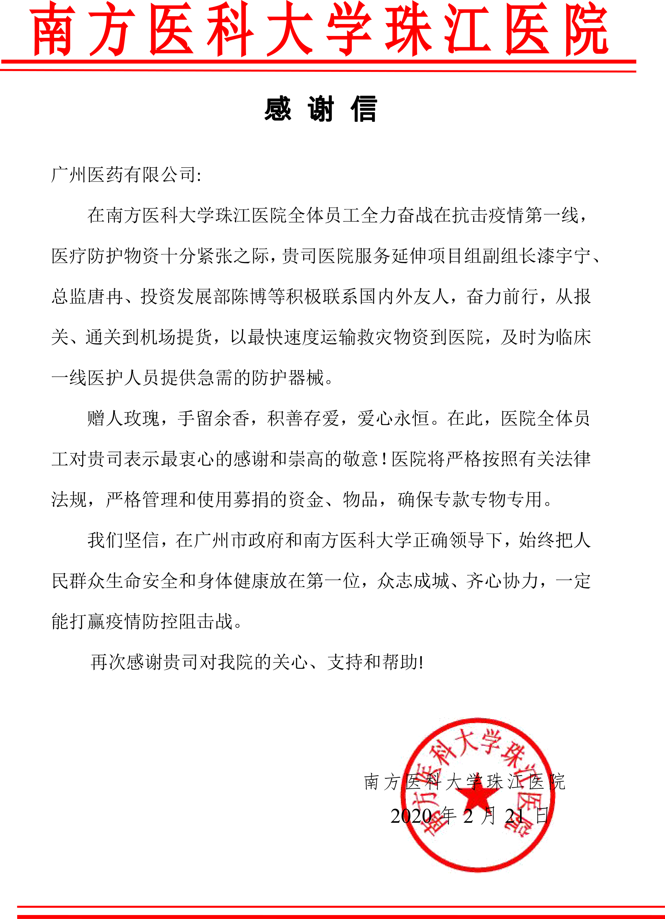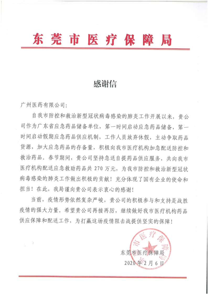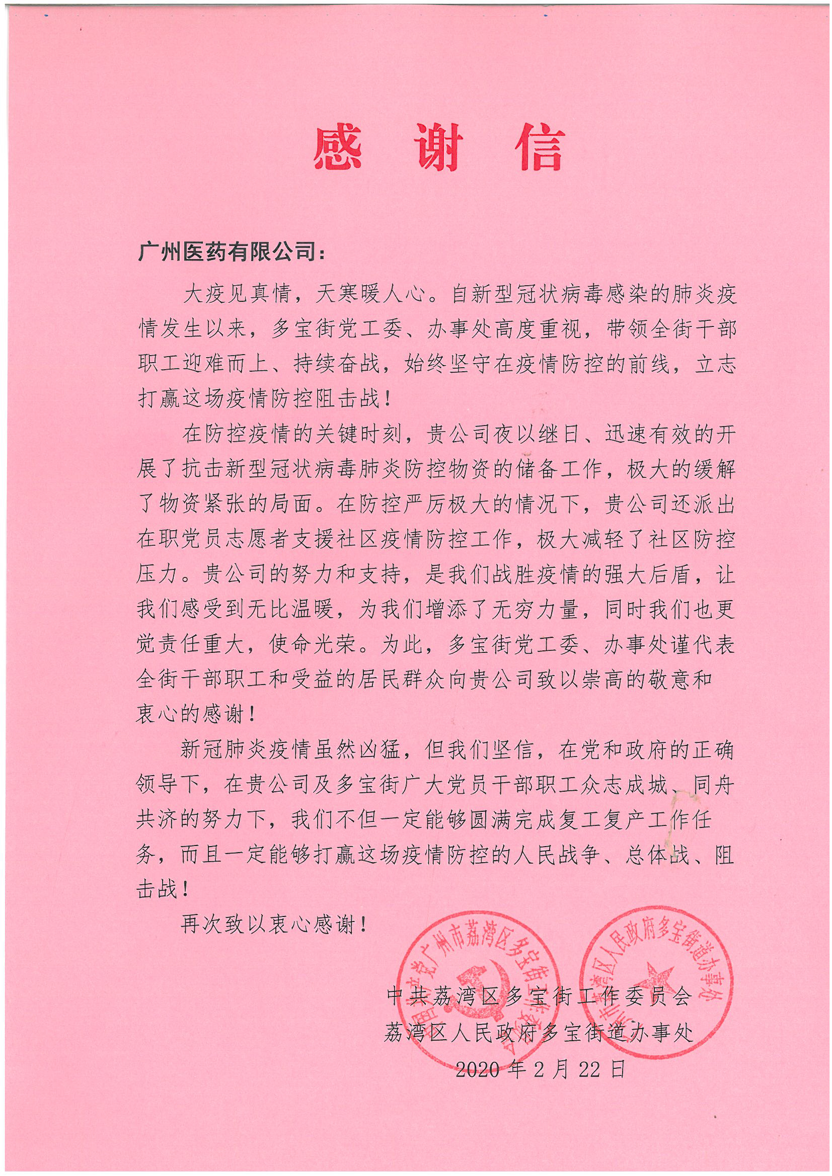 不少醫(yī)院、街道、單位發(fā)來感謝信,這是對廣州醫(yī)藥的肯定和認(rèn)可。疫情尚未結(jié)束,廣州醫(yī)藥將繼續(xù)堅(jiān)守在一線,全力以赴確保市民大眾安全用藥和保證藥品供應(yīng)。