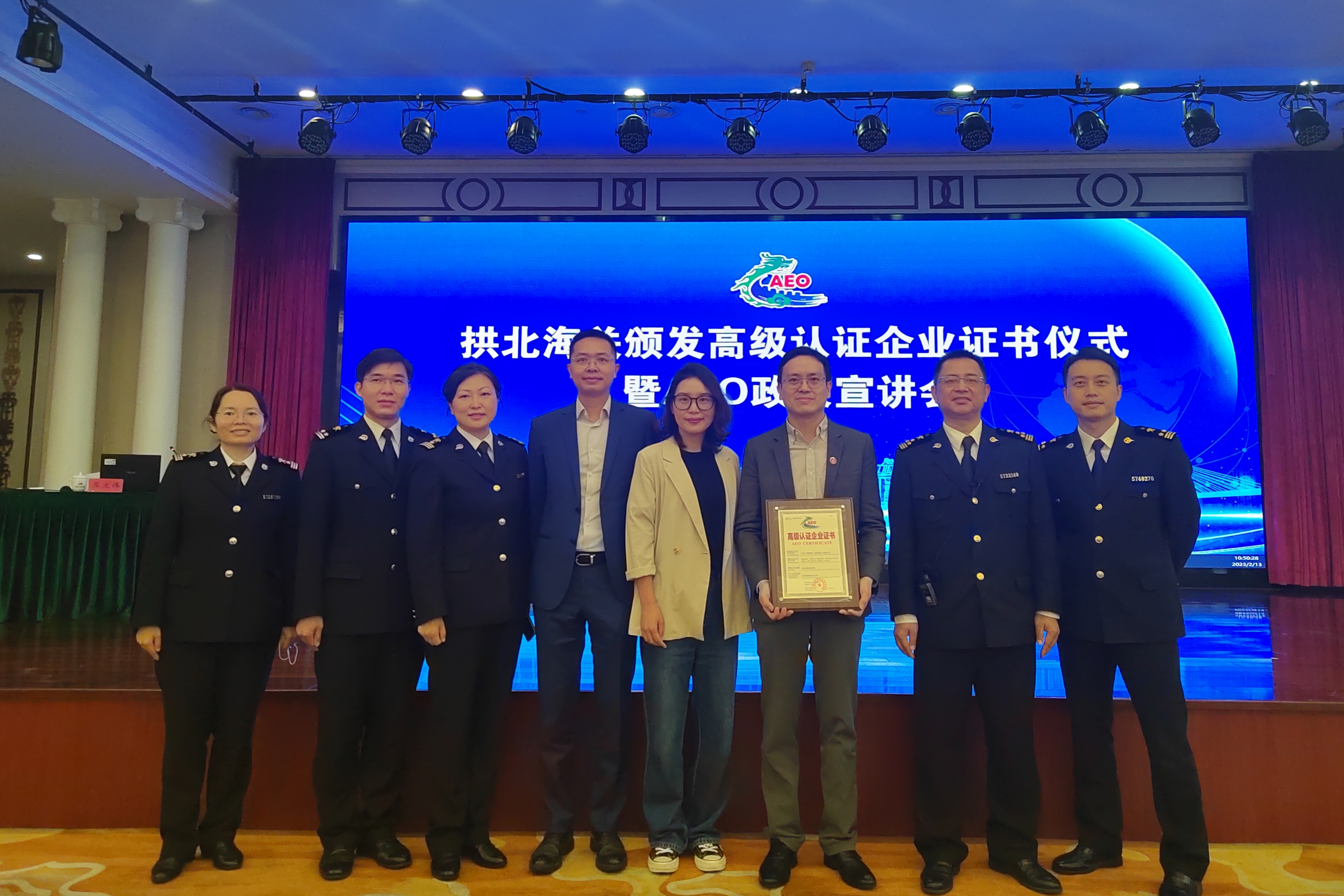 2月13日,拱北海關(guān)在珠海舉行頒發(fā)高級認(rèn)證企業(yè)證書儀式,為珠海片區(qū)57家新、老AEO高級認(rèn)證企業(yè)頒發(fā)證書、換發(fā)新證書。廣州醫(yī)藥股份有限公司(下稱“廣州醫(yī)藥”)旗下成員企業(yè)——廣藥(珠海橫琴)醫(yī)藥進出口有限公司(下稱“廣藥橫琴”)成為2022年度第一批通過海關(guān)AEO高級認(rèn)證的企業(yè)。廣州醫(yī)藥總裁助理、廣藥橫琴總經(jīng)理朱振宇上臺領(lǐng)取認(rèn)證證書。