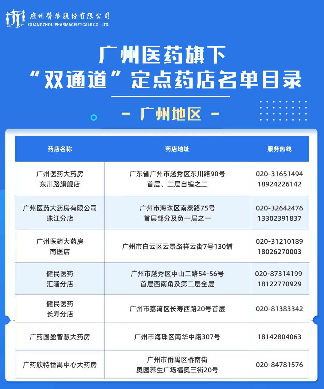 廣州醫(yī)藥旗下“雙通道”定點藥店(廣州地區(qū))