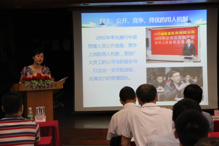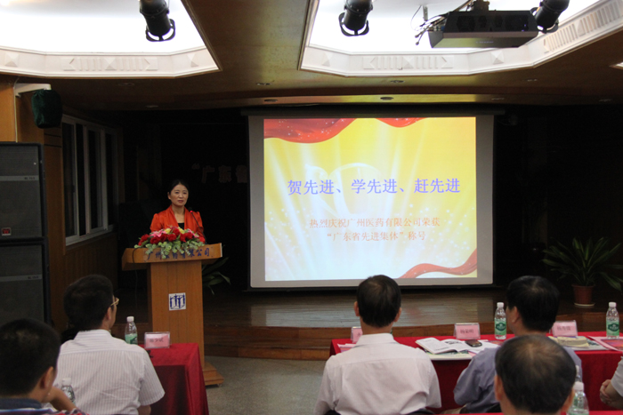 廣州醫(yī)藥有限公司子公司——健民公司徐愛華總經(jīng)理作《賀先進、學先進、趕先進》發(fā)言。