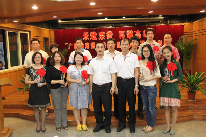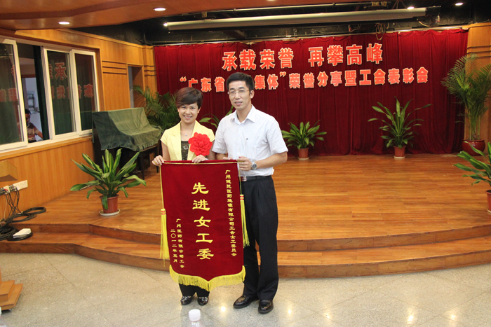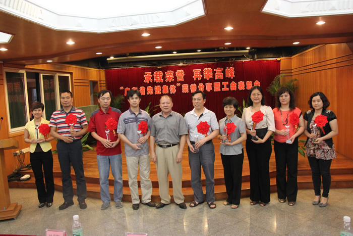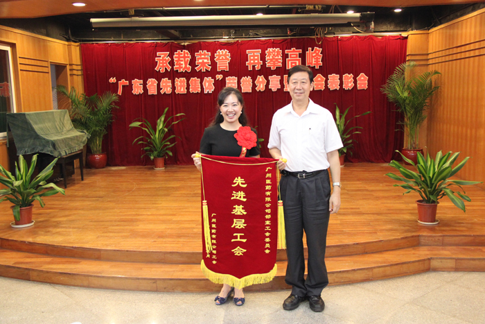 2012年5月22日,“承載榮譽 再攀高峰 ——‘廣東省先進集體’榮譽分享暨工會表彰大會在廣州醫(yī)藥有限公司四樓會議廳隆重舉行,熱烈祝賀廣州醫(yī)藥有限公司榮獲“廣東省先進集體”稱號,大力表彰奮戰(zhàn)在工會戰(zhàn)線上的先進集體與優(yōu)秀個人。廣藥集團董事長、黨委書記楊榮明、廣藥集團黨委副書記、紀委書記楊秀微、廣藥集團工會主席齊兆基、廣藥集團副總經(jīng)理、公司黨委書記施少斌、廣藥集團工會副主席溫新民、廣藥集團工會副主席陸青等廣藥集團工會領(lǐng)導蒞臨現(xiàn)場,公司班子、全資子公司班子代表、部門總監(jiān)及先進集體與優(yōu)秀個人130人出席了會議,對32個工會先進集體及79名工會優(yōu)秀個人予以表彰,會議由公司黨委副書記、紀委書記、工會主席楊瑞云主持。