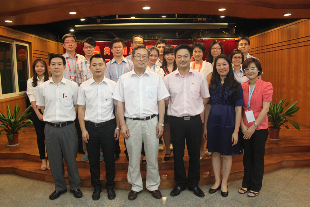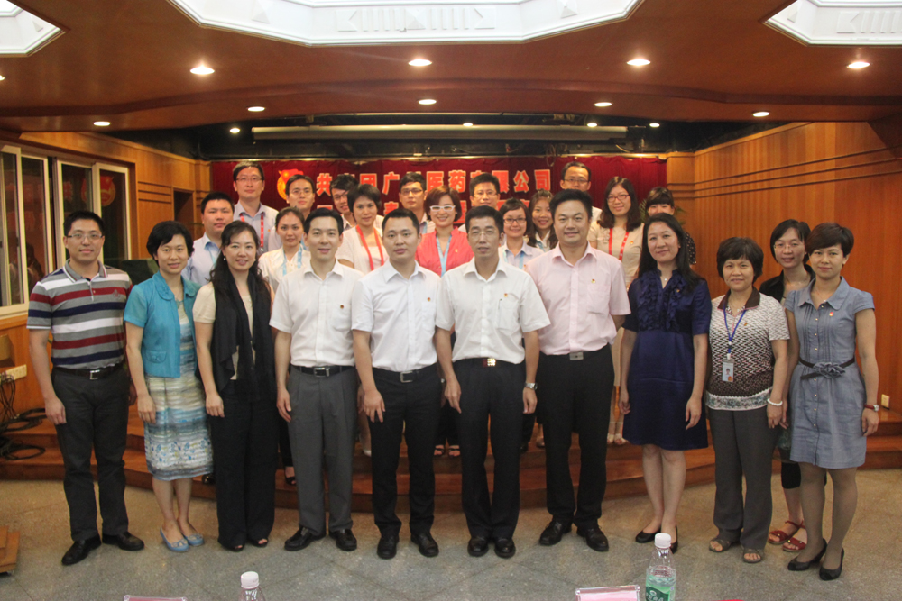 團(tuán)市委青工青農(nóng)部部長王章軍(左中)、廣藥集團(tuán)副總經(jīng)理、公司黨委書記施少斌(中右)、廣藥集團(tuán)團(tuán)委書記陳志釗(右四)、廣州藥業(yè)團(tuán)委書記龐健輝(左四)、公司黨委副書記楊瑞云(右三)等領(lǐng)導(dǎo)與公司團(tuán)委新舊委員合照