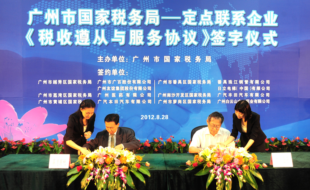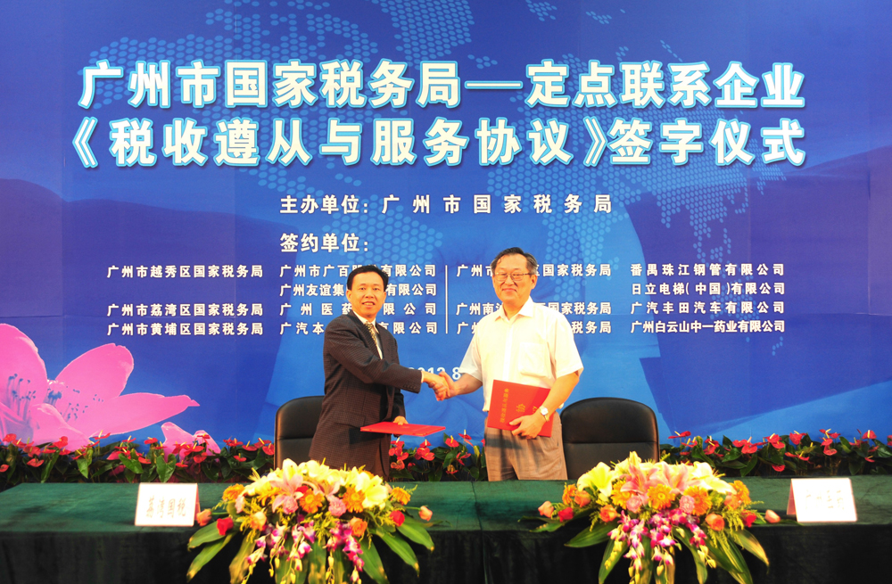 8月28日上午,廣州市國(guó)稅局舉行定點(diǎn)聯(lián)系企業(yè)《稅收遵從與服務(wù)協(xié)議》簽約儀式,旨在促進(jìn)稅企雙方達(dá)成稅收風(fēng)險(xiǎn)防控共識(shí),共同建立和完善稅收風(fēng)險(xiǎn)防控體系,提高企業(yè)的稅法遵從度。我司總裁于景輝出席儀式,并代表公司與荔灣區(qū)國(guó)稅局簽署了協(xié)議。