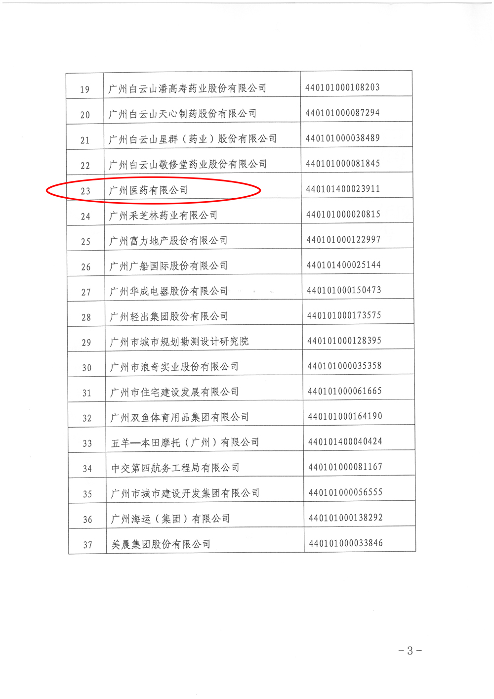 本次獲得公示的企業(yè)廣東省其中有205家;廣州市企業(yè)37家。我司和廣州健民醫(yī)藥連鎖有限公司名列其中。