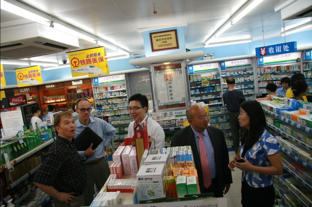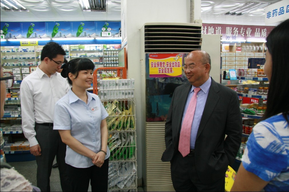 代表團一行對健民門店的布局、品種結(jié)構(gòu)進行了了解,同時還對健民各門店周邊的消費環(huán)境進行了考察,參觀了附近的個人護理用品店以及連鎖藥店。在健樂分店,董事長還饒有興致的和店長進行了交談,聽取了基層員工對企業(yè)的看法。