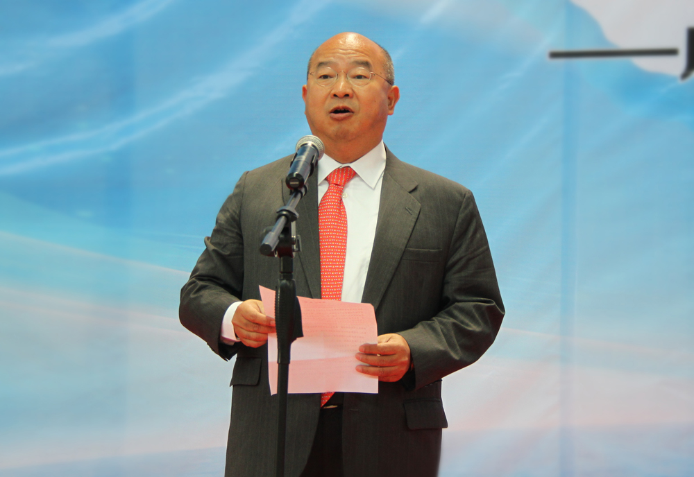 廣州醫(yī)藥董事長(zhǎng)李炳容在竣工典禮上講話