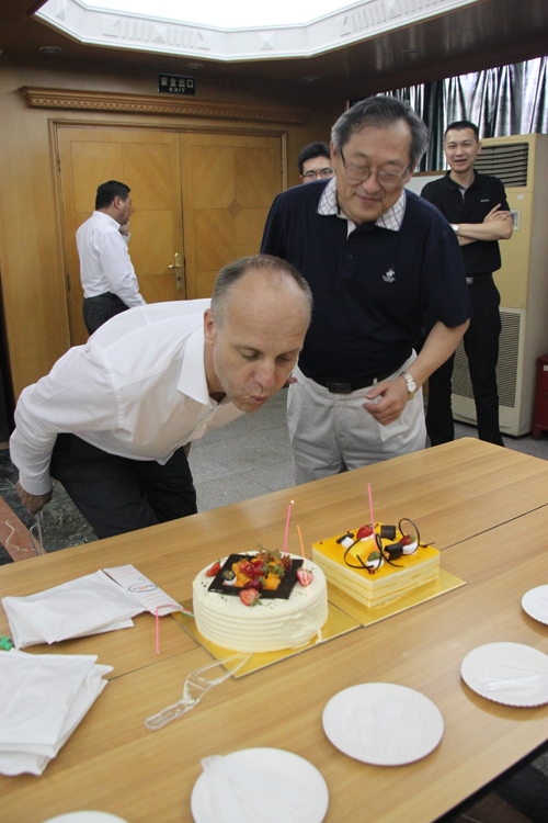廣州醫(yī)藥總裁于景輝代表員工和Anthony Robert慶祝生日。