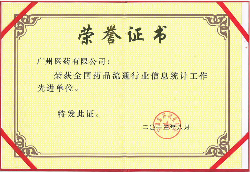 2013年8月17日至18日,由中國(guó)醫(yī)藥商業(yè)協(xié)會(huì)組織的“藥品流通行業(yè)信息工作年會(huì)”在哈爾濱召開。會(huì)議對(duì)藥品流通行業(yè)統(tǒng)計(jì)工作先進(jìn)單位進(jìn)行了表彰,14個(gè)地方行業(yè)協(xié)會(huì)、49家企業(yè)獲得表彰。其中,廣州醫(yī)藥榮獲“全國(guó)藥品流通行業(yè)信息統(tǒng)計(jì)工作先進(jìn)單位”榮譽(yù)。