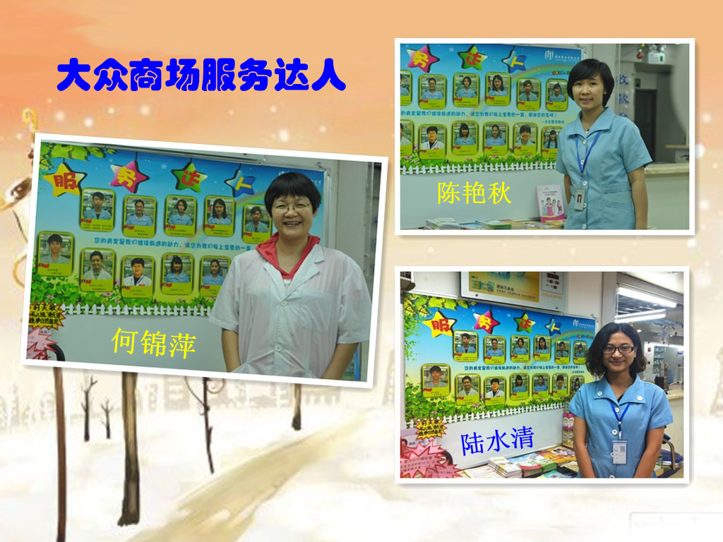 此次的“服務(wù)達(dá)人”評選,候選人來自大眾商場的13名員工,由公司本部同事及商場顧客共同投票評選。通過評選活動,讓顧客更深切感受到大眾商場全體人員真誠親切的笑容,專業(yè)的業(yè)務(wù)水平、“查、找、留”的貼心服務(wù)。通過公平投票競選,何錦萍、陳艷秋、陸水清榮獲“服務(wù)達(dá)人”稱號。