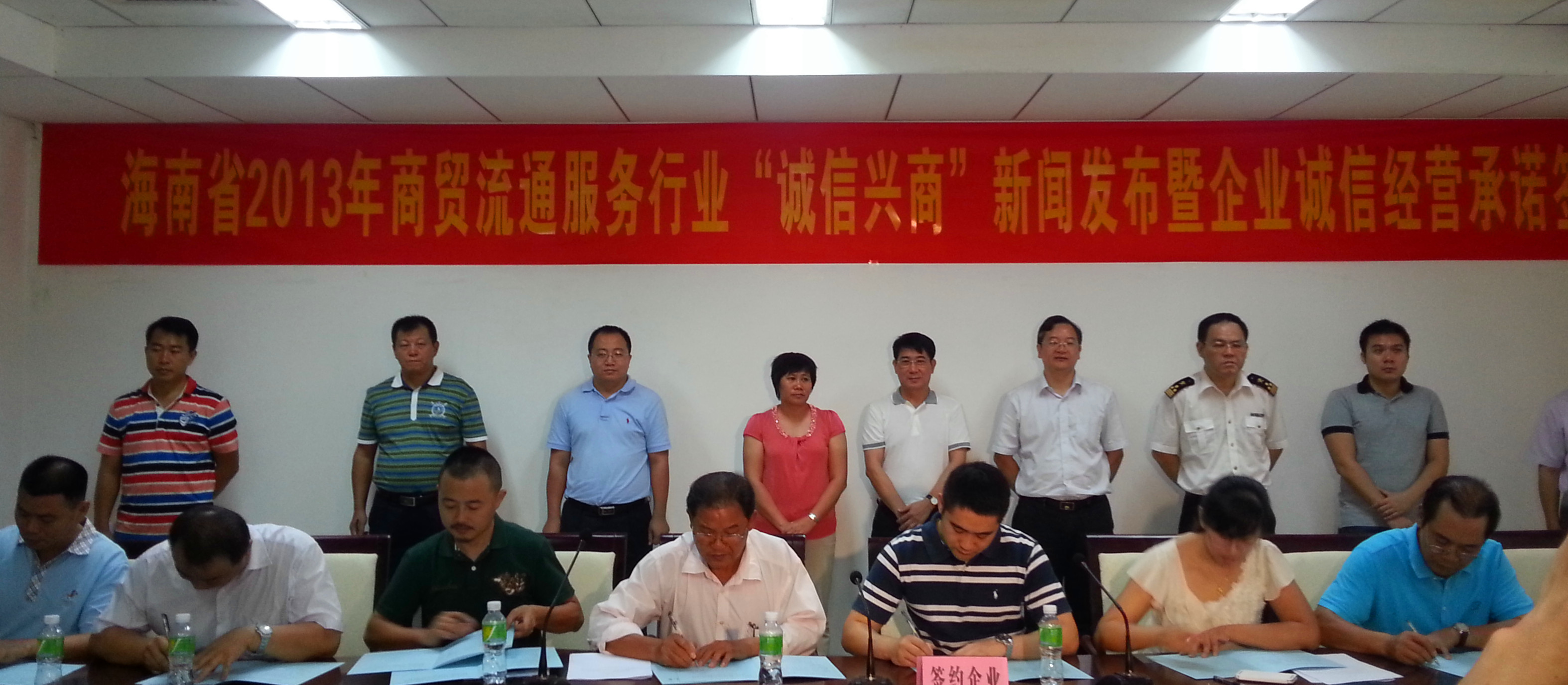 9月25日,海南省2013年商貿(mào)流通服務行業(yè)“誠信興商”新聞發(fā)布會暨百家商貿(mào)服務企業(yè)誠信經(jīng)營承諾簽字儀式在省政府辦公大樓二樓會議室舉行。廣州醫(yī)藥有限公司成員企業(yè)海南廣藥晨菲醫(yī)藥有限公司(下稱:海南晨菲)被評為“海南省百家‘誠信興商’榮譽單位”;海南晨菲財務總監(jiān)漆宇寧代表海南晨菲出席新聞發(fā)布會并簽署了企業(yè)誠信經(jīng)營承諾書。