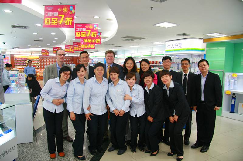 2013年11月14日,世界500強(qiáng)企業(yè)、全美大的零售藥店連鎖企業(yè)沃爾格林公司國際業(yè)務(wù)高級副總裁、沃爾格林公司創(chuàng)始人第四代傳人凱文.沃爾格林先生(Mr. Kevin Walgreen)、國際業(yè)務(wù)總監(jiān)陶志艷女士到訪廣州,廣州醫(yī)藥有限公司(下稱:廣州醫(yī)藥)董事、總裁于景輝,董事鐘立,董事、副總裁羅會怡,副總裁鄭堅(jiān)雄、陳光焰,財(cái)務(wù)總監(jiān)朱羽文等接待了代表團(tuán)一行。