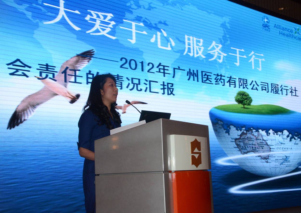 2013年12月5日,“2013中國藥品流通行業(yè)年度大會”在廣州舉行,藥品流通行業(yè)相關(guān)部委領(lǐng)導(dǎo)、國內(nèi)外行業(yè)專家、相關(guān)醫(yī)藥行業(yè)協(xié)會、藥品批發(fā)和零售企業(yè)負責(zé)人和媒體代表300多人參加了大會。廣州醫(yī)藥有限公司(下稱:廣州醫(yī)藥)在會上發(fā)布了"2012年社會責(zé)任報告",廣州醫(yī)藥黨委副書記楊瑞云作了社會責(zé)任的專題發(fā)言。廣州醫(yī)藥已連續(xù)3年參與中國醫(yī)藥商業(yè)協(xié)會的發(fā)布。