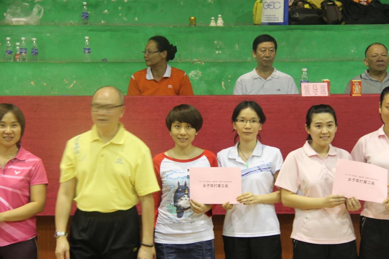 本次比賽設(shè)男單、女單、男雙、女雙四個(gè)項(xiàng)目。廣州藥業(yè)屬下11個(gè)單位及集團(tuán)藥業(yè)本部組成12支隊(duì)伍兩百多名運(yùn)動(dòng)員參加了比賽。廣州醫(yī)藥有限公司組成了36人的參賽隊(duì)伍,并組織了陣容強(qiáng)大的啦啦隊(duì)。在男雙項(xiàng)目中,公司選手潘良輝、梁曙光搭檔男雙,一路高奏凱歌,在冠軍爭奪戰(zhàn)中擊敗來自潘高壽藥業(yè)的選手,斬獲冠軍;徐有恒和陳廣峰搭檔獲男雙第五名;男單項(xiàng)目中,陳銳堅(jiān)獲得季軍,郭鏡新、黃海亮和陳廣峰分獲四、六、七名;女雙項(xiàng)目,潘敏莉和廖艷艷獲季軍;潘敏莉同時(shí)獲得女單第三名的佳績。